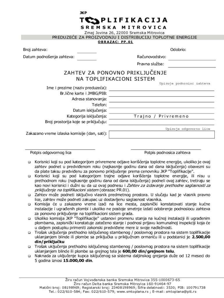 JKPTPLIFIKACIJAS R E M S K AM I T R O V I C Ahmad Jovian 26, 22000 Seems MitrovicaPREDUZEE ZA PROIZVODNJU I DISTRIBUTION COLOGNE ENERGIZE