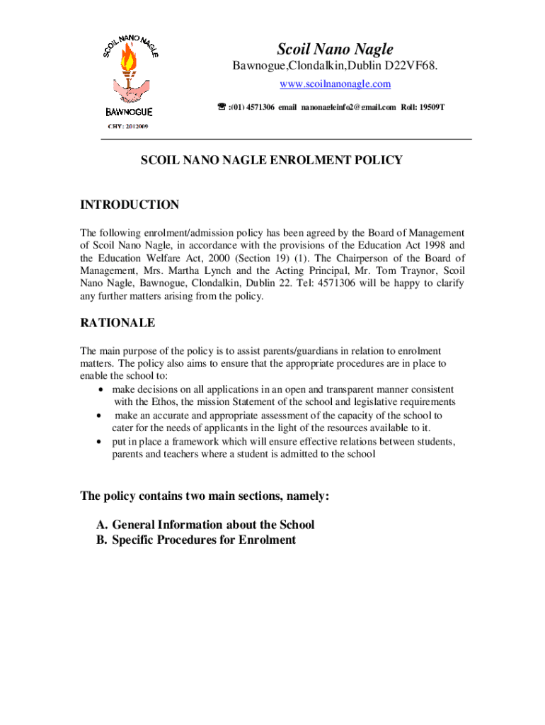 :(01) 4571306 email nanonagleinfo2@gmail.com Roll: 19509TSCOIL NATO EAGLE Enrollment POLICYINTRODUCTION