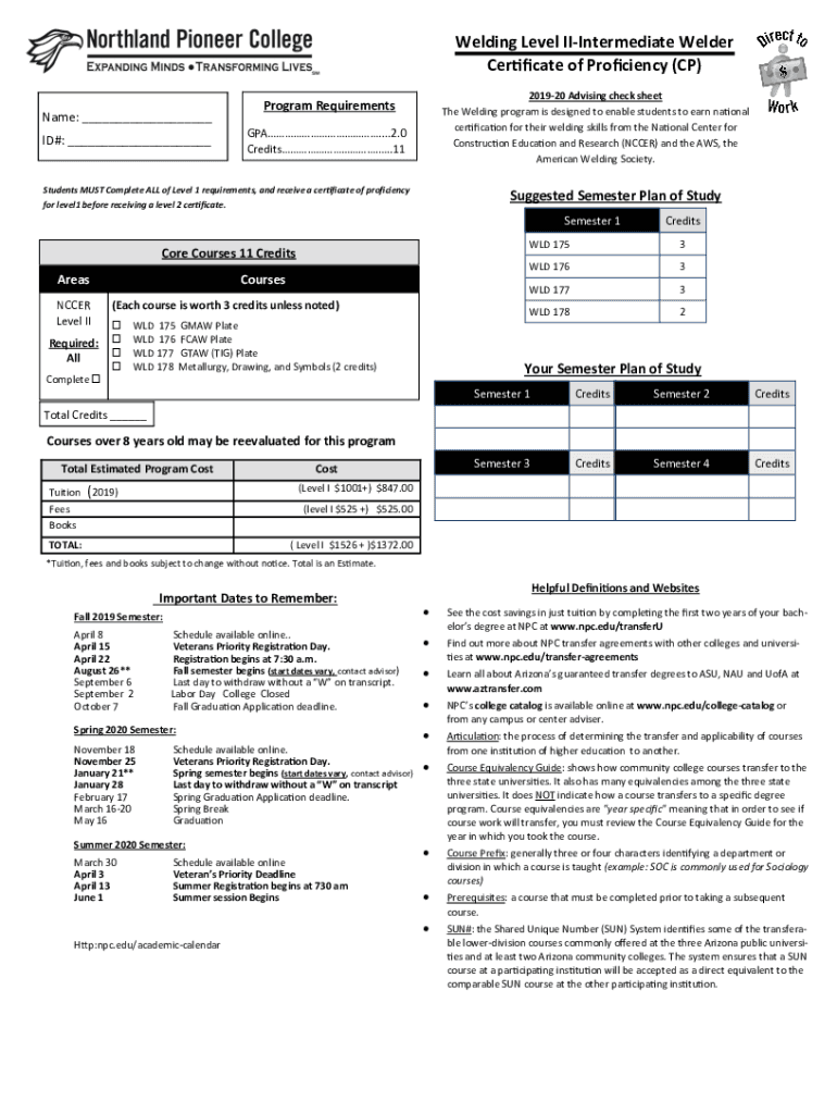 Get the free Welding Level II-Intermediate Welder Certificate of Proficiency (CP)