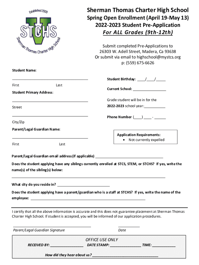 Sherman Thomas Charter High Schooling Open Enrollment (April 19May 13)