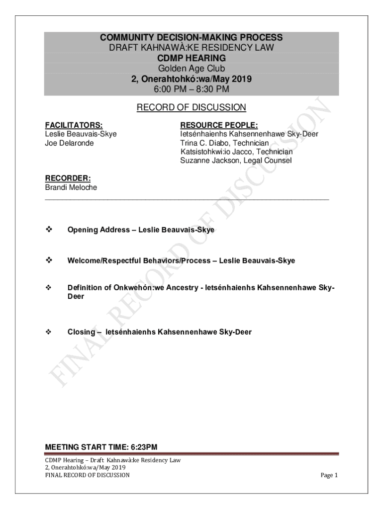 Get the free Kahnaw:ke Community Decision Making and Review Process