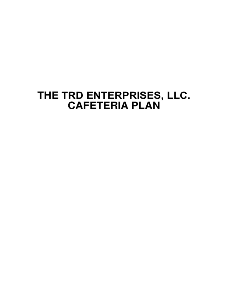 THE TRY ENTERPRISES, LLC. CAFETERIA PARTICLE I. Introductory Provisions TRY ENTERPRISES, LLC. (the Employer) hereby establishes the TRY ENTERPRISES, LLC. Cafeteria Plan (the Plan) effective JANUARY