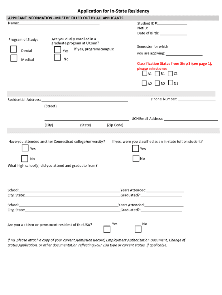 Get the free Application for In-State Tuition at the University of Connecticut