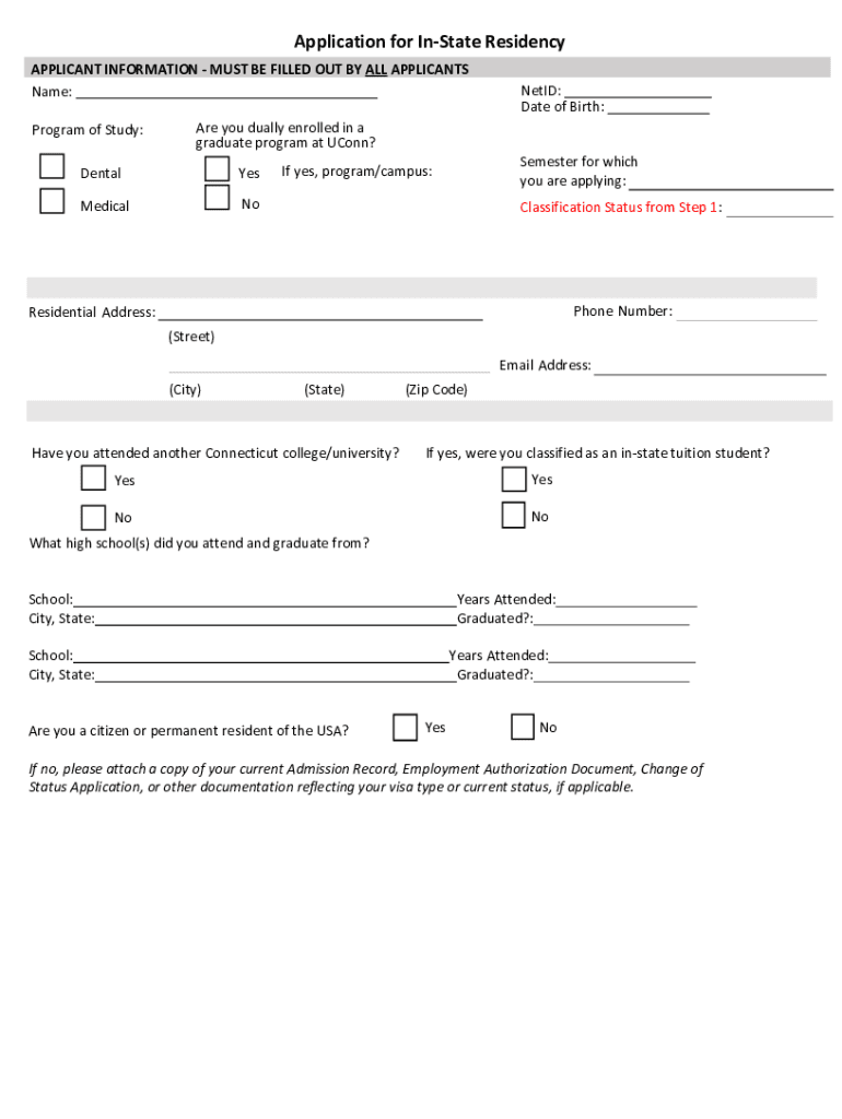 Application for Instate Residency Office of the Registrar Instate tuition rates are a privilege authorized by the Connecticut General Statutes 10a26 et seq., and are awarded upon successful application
