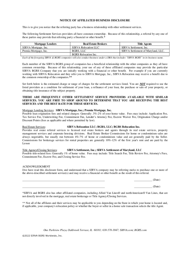 Get the free Is an Affiliated Business Disclosure Statement required to be ...
