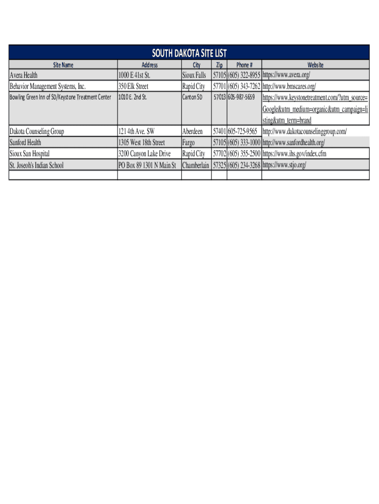 350 Elk StreetBowling Green Inn of SD/Keystone Treatment Center1010 E. 2nd St. Dakota Counseling