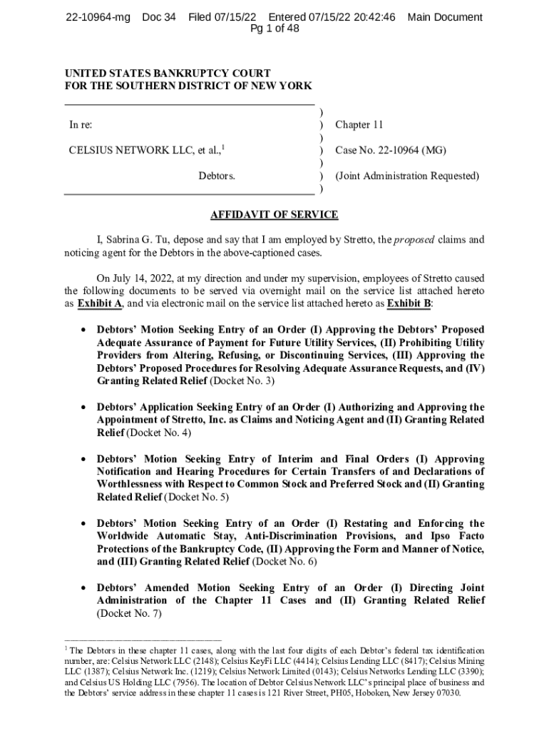 Get the free 22-10964 Celsius Network LLCSouthern District of New York