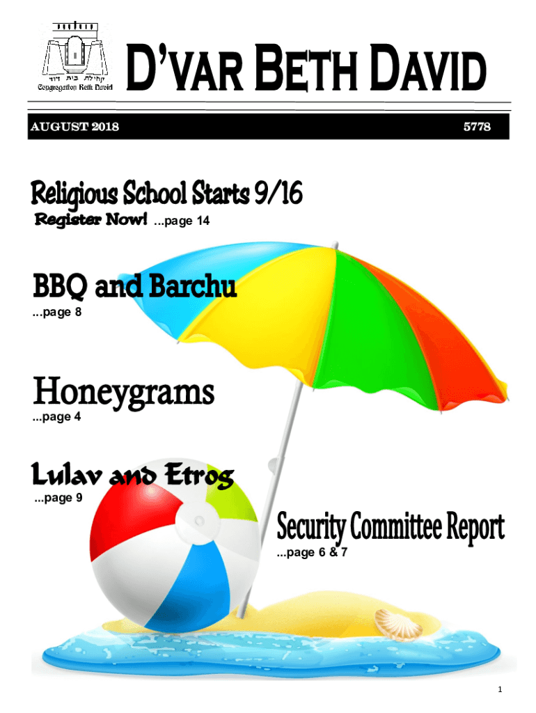 August 20185778...page 14...page 8...page 4...page 9...page 6 & 71Main Office 4082573333 info@bethdavid.org Rabbis Jaycee Alpert Senior Rabbi 4083669104 rabbialpert@bethdavid.org Daniel J. Pressman