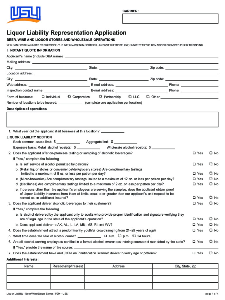Get the free Liquor Store Product ApplicationAll States - USLI