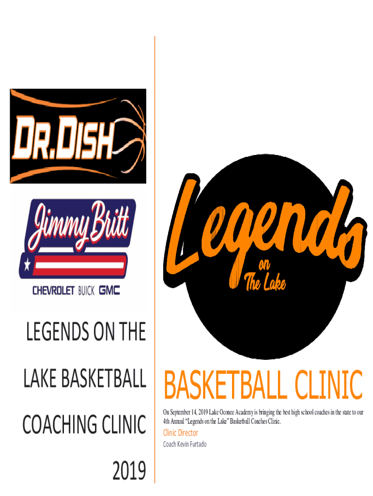 LEGENDS ON THE LAKE BASKETBALL COACHING CLINIC 2019BASKETBALL CLINIC On September 14, 2019, Lake Ocoee Academy is bringing the best high school coaches in the state to our 4th Annual Legends on the