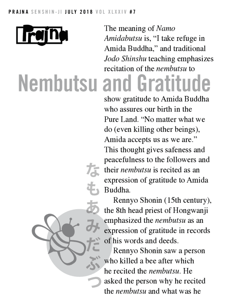 The specific details of nembutsu and gratitude may vary depending on individual beliefs and practices.