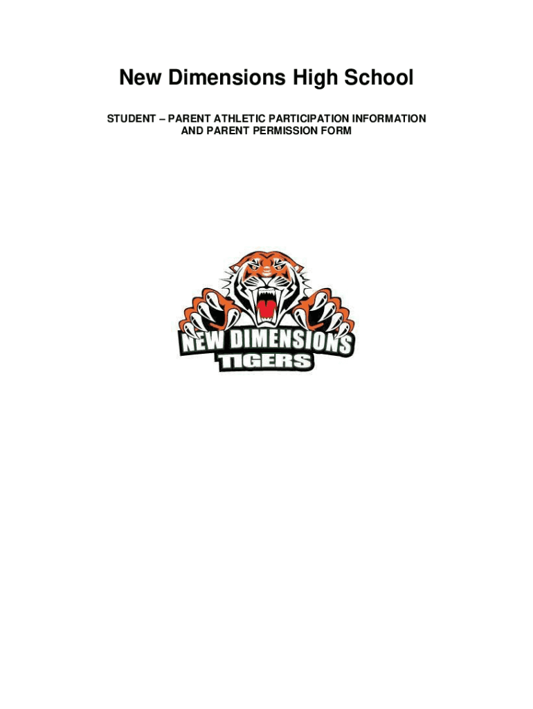 New Dimensions High School STUDENT PARENT ATHLETIC PARTICIPATION INFORMATION AND PARENT PERMISSION Former Dimensions High School STUDENT PARENT ATHLETIC PARTICIPATION INFORMATION AND PARENT PERMISSION