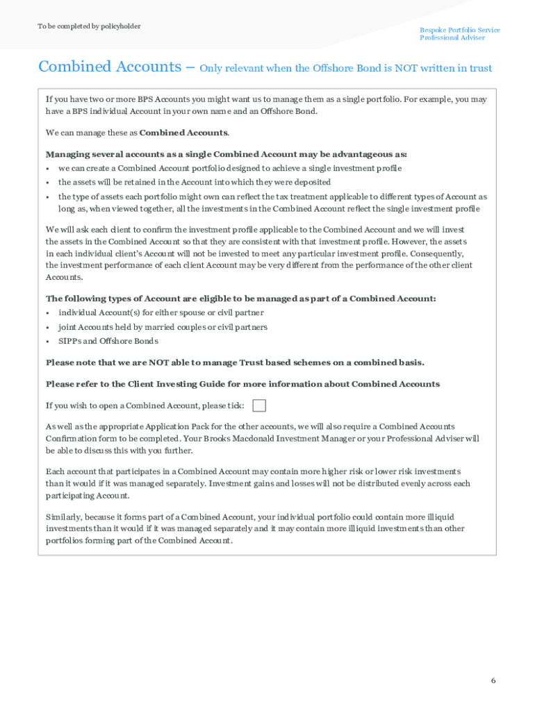 Bespoke Portfolio Service Application Pack for Offshore Bonds Suitability Responsibility: Professional AdviserBespoke Portfolio Service Professional AdviserCompleting this Application Pack Welcome
