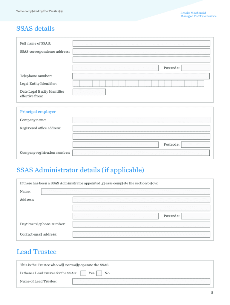 Managed Portfolio Service Application Pack for a Small Self Administered Scheme (SSAS) Suitability Responsibility: Professional Adviser Brooks Macdonald Managed Portfolio ServiceNow Trustees Welcome