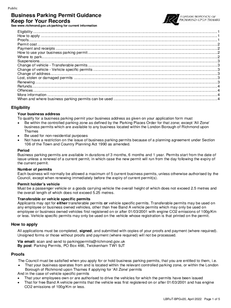 PublicBusiness Parking Permit Guidance Keep for Your Records See www.richmond.gov.uk/parking for current informationEligibility ............................................................................................................................................................................