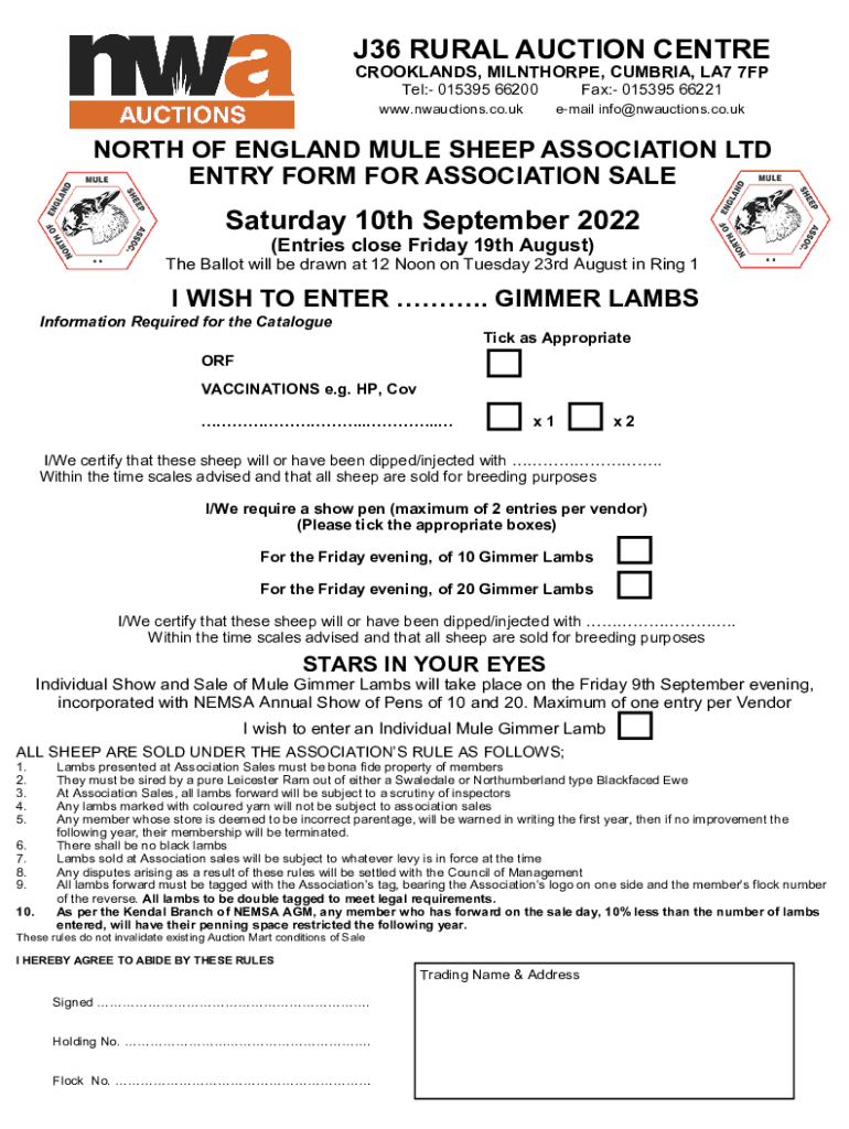 Nemsa gimmer lamb entry can be filled out online on the association's official website or through paper forms that can be submitted by mail.