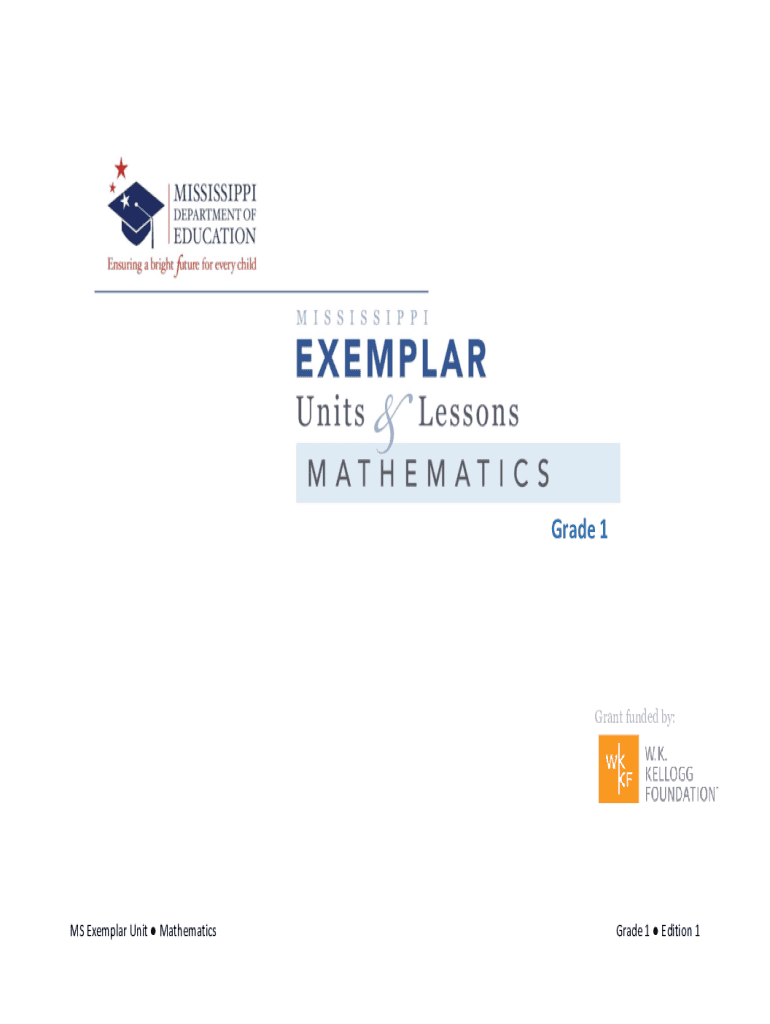 Grade 1Grant funded by:MS Exemplar Unit MathematicsGrade 1 Edition 1Lesson 7: What Number is the Pirate Missing?