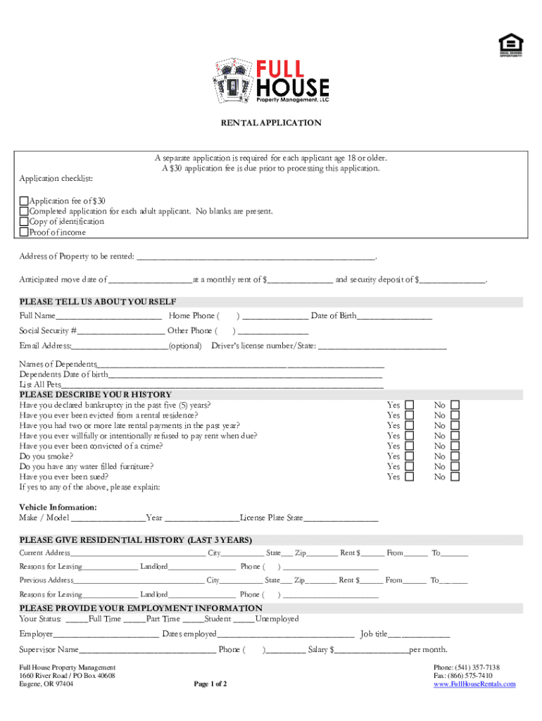 RENTAL APPLICATIONApplication checklist:A separate application is required for each applicant age 18 or older. A $30 application fee is due prior to processing this application. Application fee of