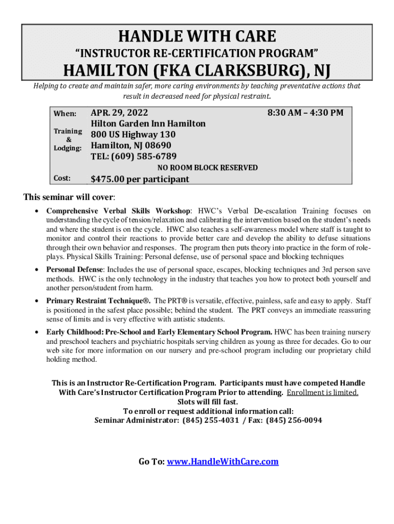 INSTRUCTOR RECERTIFICATION PROGRAMHAMILTON (AKA CLARKSBURG), NJ