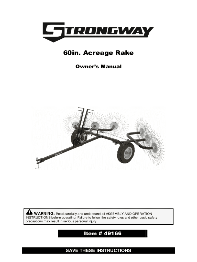 Owners ManualWARNING: Read carefully and understand all ASSEMBLY AND OPERATION