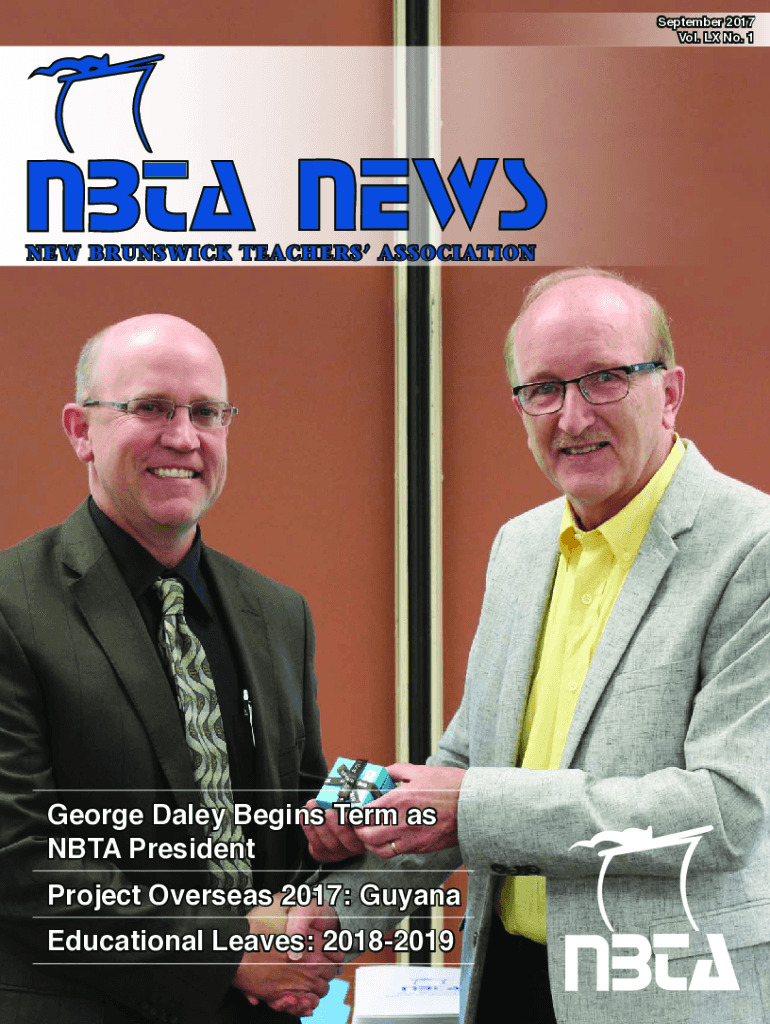 September 2017 Vol. LX No. 1NEW BRUNSWICK TEACHERS ASSOCIATION George Daley Begins Term as NITA PresidentProject Overseas 2017: Guyana Educational Leaves: 20182019In This Issuer NITA, Your Magazine