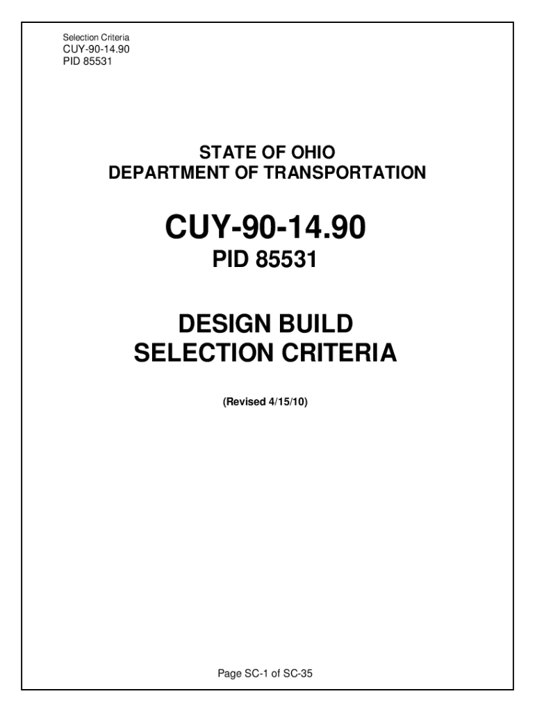 Selection CriteriaCUY9014.90 PID 85531STATE OF OHIO DEPARTMENT OF TRANSPORTATIONCUY9014.90 PID 85531DESIGN BUILD SELECTION CRITERIA (Revised 4/15/10)Page SC1 of SC35Selection CriteriaCUY9014.90 PID