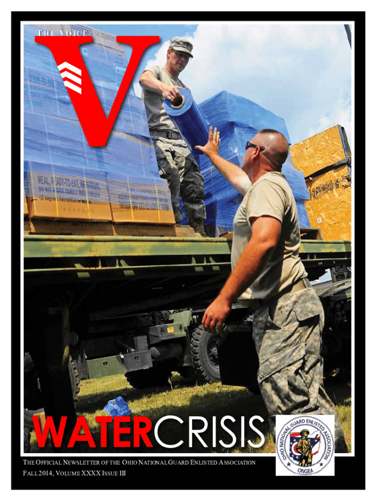 The VOICEWATERCRISISTHE OFFICIAL NEWSLETTER OF THE OHIO NATIONAL GUARD ENLISTED ASSOCIATION FALL 2014, VOLUME XXX ISSUE iMessage FROM THE PRESIDENTMembership more important now than Vernon more than