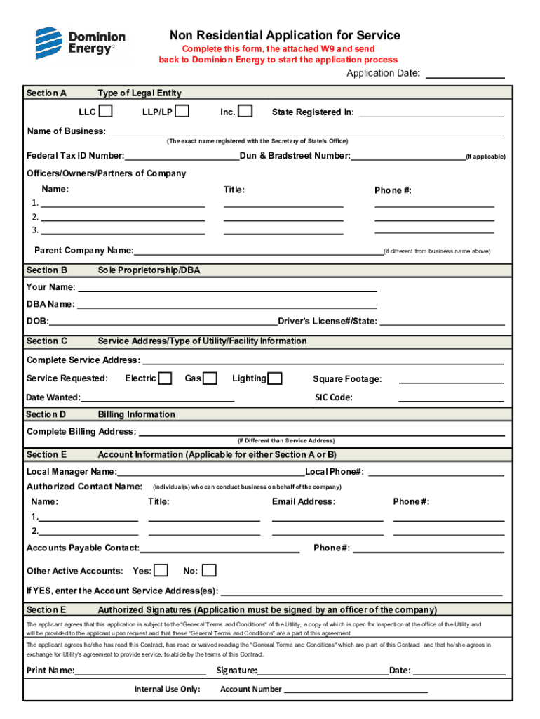 Non-Residential Contract For Service Thank you for requesting service with Dominion Energy. We appreciate the opportunity to serve you. Information about your deposit Our standard deposit is an amount