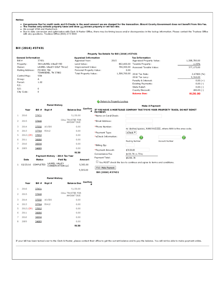 ConvenienceFeeforcreditcardsandEChecksistheexactamountwearechargedforthetransaction. BlountCountyGovernmentdoesnotbenefitfromthisfee.