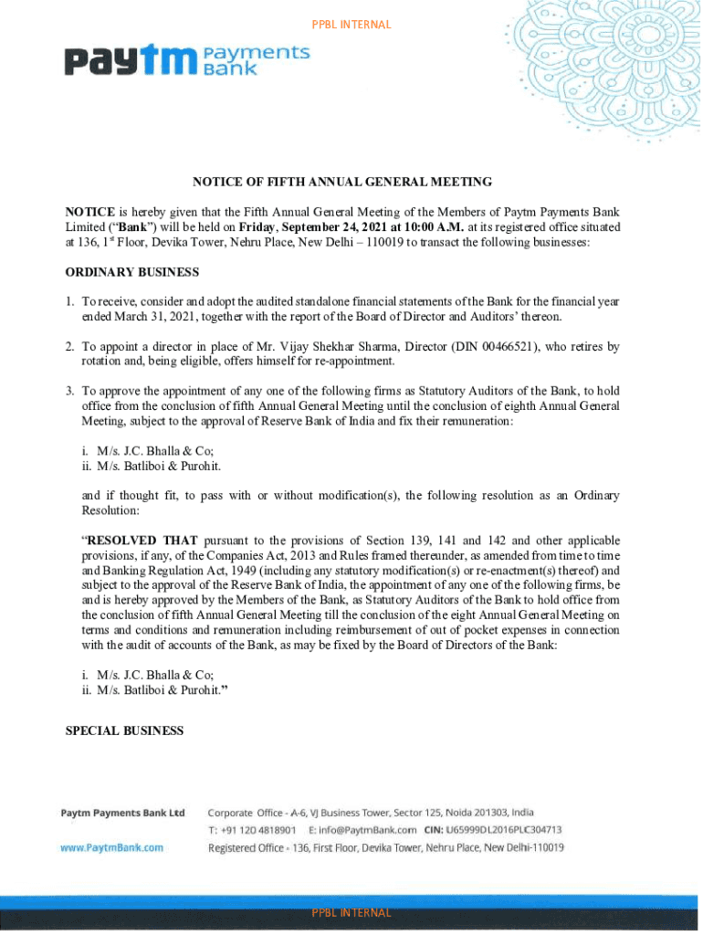 Get the free NOTICE Notice is hereby given that the 5th Annual General ...