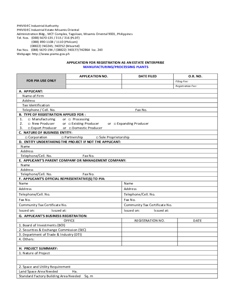 Obtain and fill out the application form for Phividec Industrial Authority.