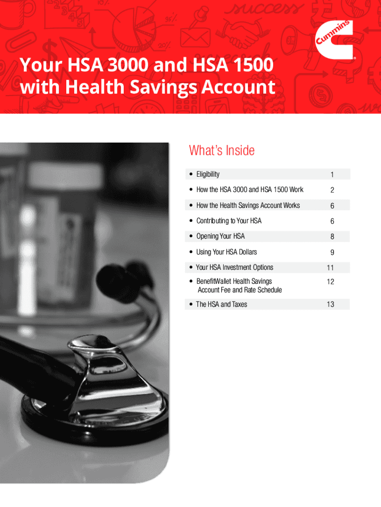Your HSA 3000 and HSA 1500 with Health Savings Account What's Inside Eligibility1 How the HSA 3000 and HSA 1500 Work2 How the Health Savings Account Works6 Contributing to Your HSA6 Opening Your HSA8