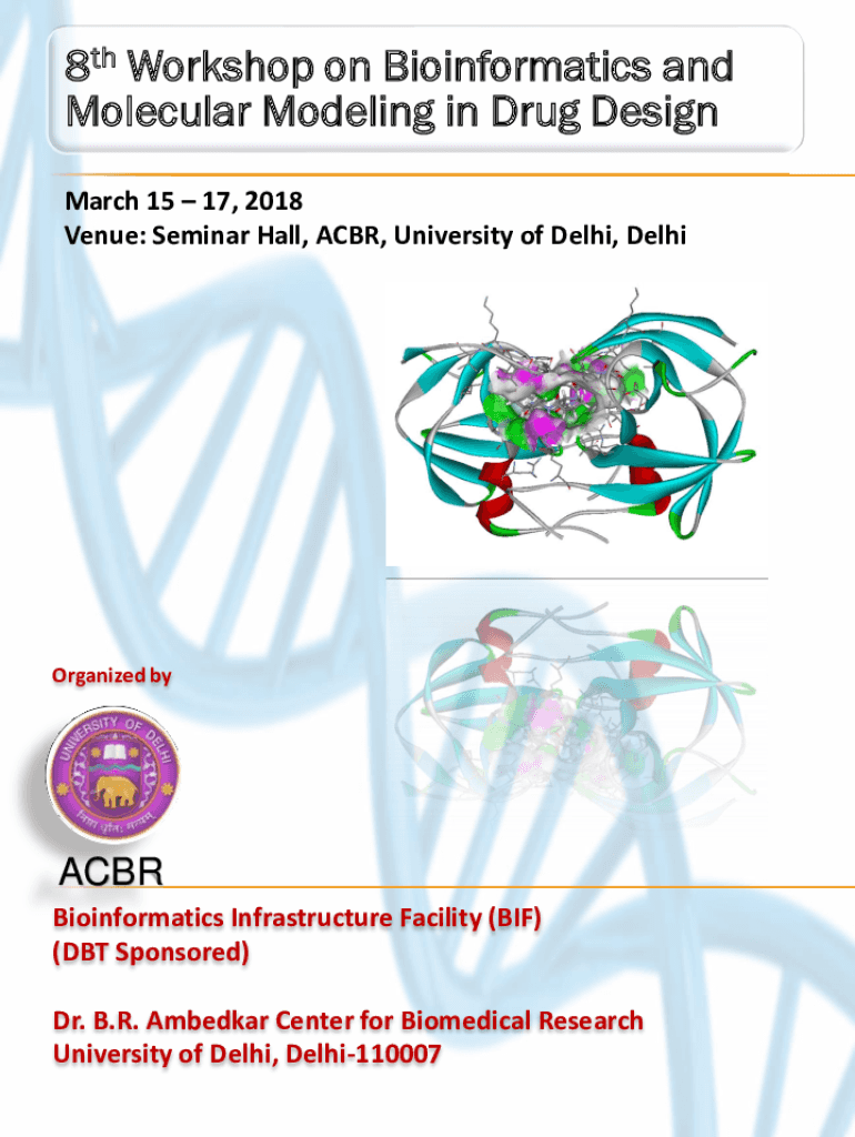 8th Workshop on Bioinformatics and Molecular Modeling in Drug Design March 15 17, 2018 Venue: Seminar Hall, ABBR, University of Delhi, DelhiOrganized bracer Bioinformatics Infrastructure Facility