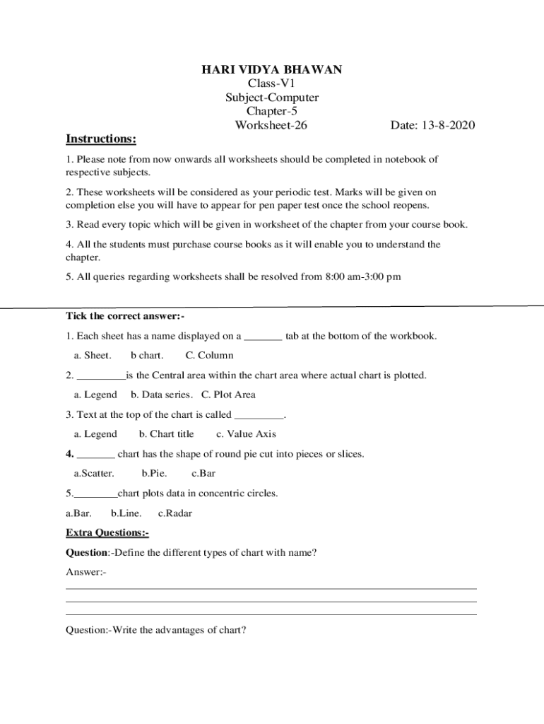 HARD VIDA SHAWN ClassV1 SubjectComputer Chapter5 Worksheet26Date: 1382020Instructions: 1. Please note from now onwards all worksheets should be completed in notebook of respective subjects. 2. These