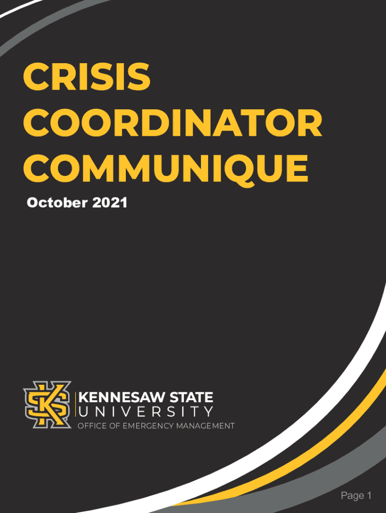 CRISIS COORDINATOR Communiqué October 2021OFFICE OF EMERGENCY MANAGEMENT Page 1IN THIS ISSUE Take a Quiz. . . . . . . . . . . . . . . . . . . . . . . 2 Training Updates. . . . . . . . . . . . . .