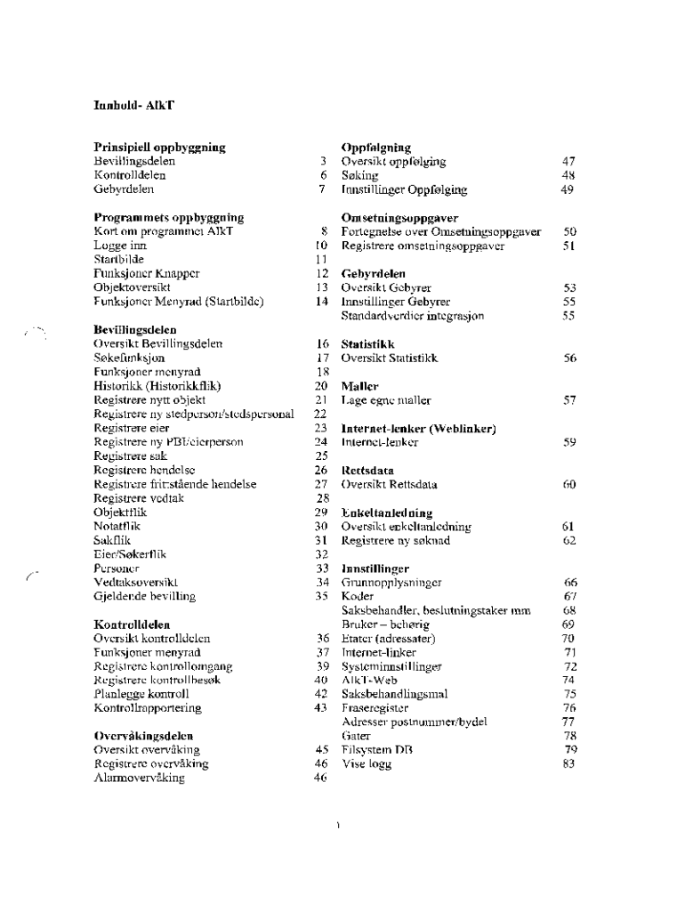Get the free Prinsipiell oppbyggning Kontrolldelen Logge inn Obj ...