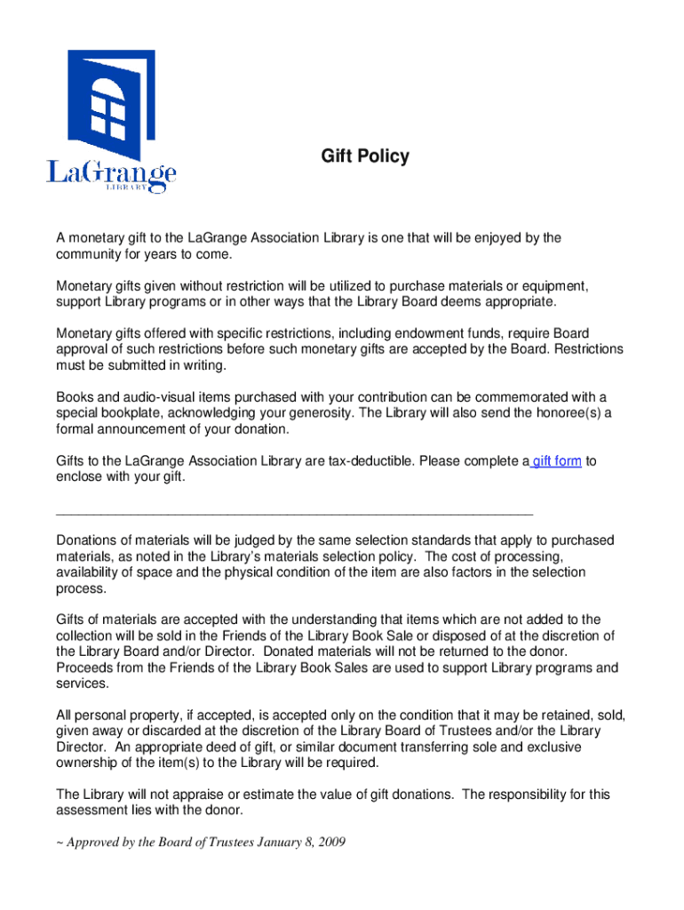 Get the free A monetary gift to the LaGrange Association Library is one that will be enjoyed by the