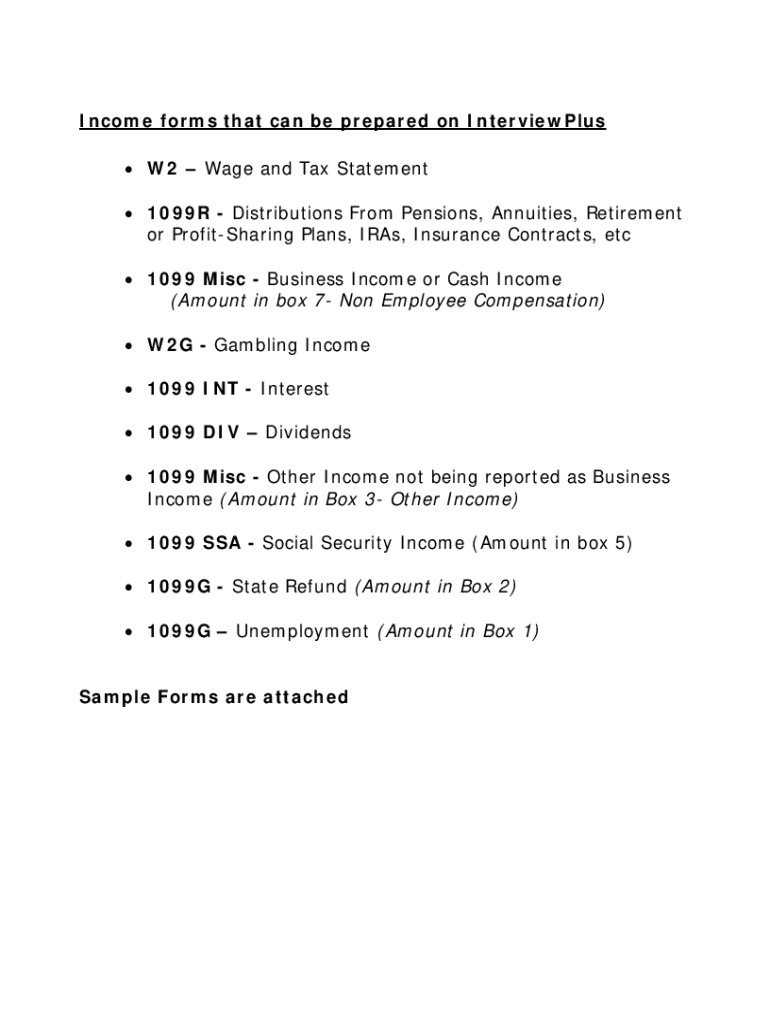 The missing/incorrect W-2 form should include information about wages, tips, and other compensation received, as well as taxes withheld. The missing/incorrect 1099-R form should include information about distributions from retirement accounts.