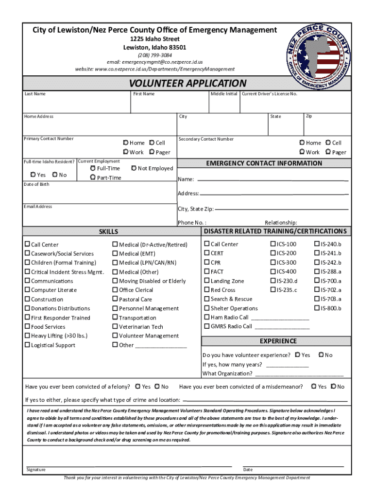 Get the free Emergency Management Department - Nez Perce County