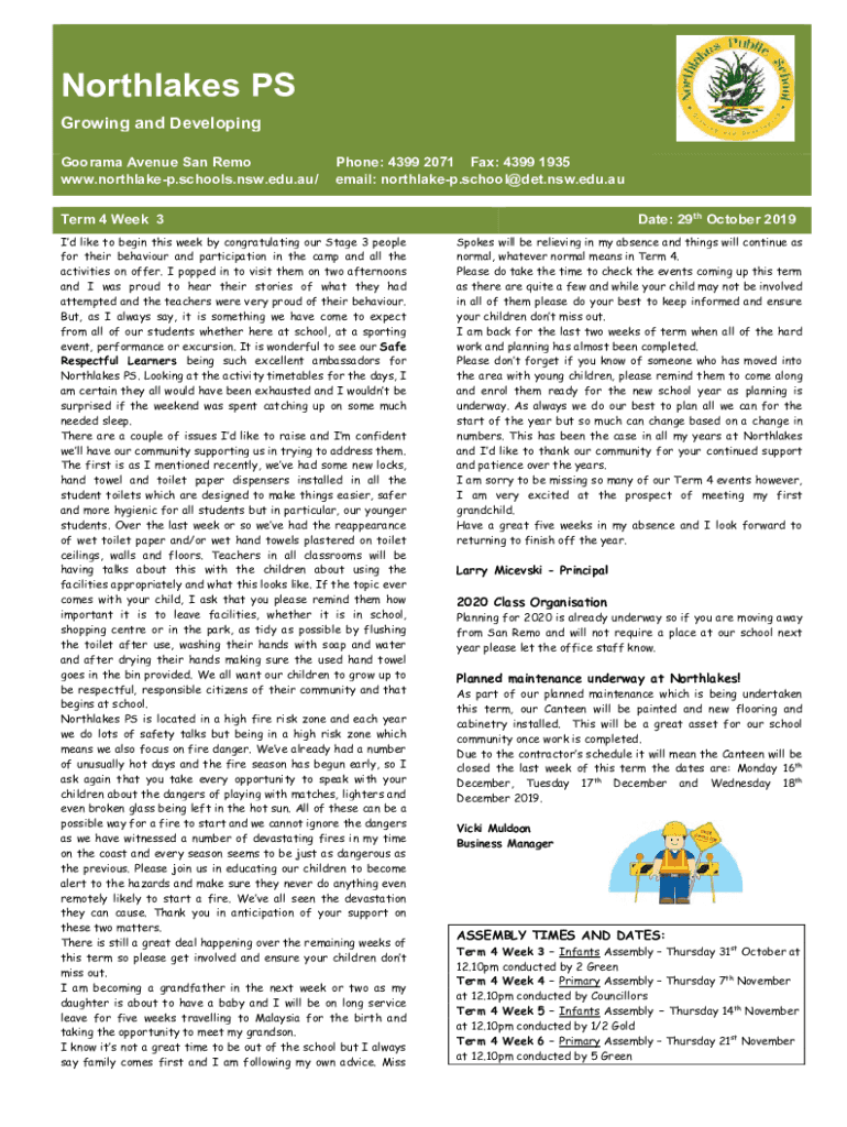 North lakes PS Growing and Developing Diorama Avenue San Demo www.northlakep.schools.nsw.edu.au/Phone: 4399 2071 Fax: 4399 1935 email: northlakep.school@det.nsw.edu.auTerm 4 Week 3 I'd like to begin