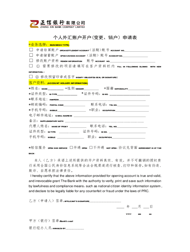 (* BUSINESS TYPE) OPEN SETTLEMENT ACCOUNT NO.___ OPEN SAVINGS ACCOUNT NO.___ RENEW INFORMATION ACCOUNT NO.___ FILL IN FOLLOWING BLANKS WITH NEW INFORMATION. MODIFY OBLIGATED SEAL OR.