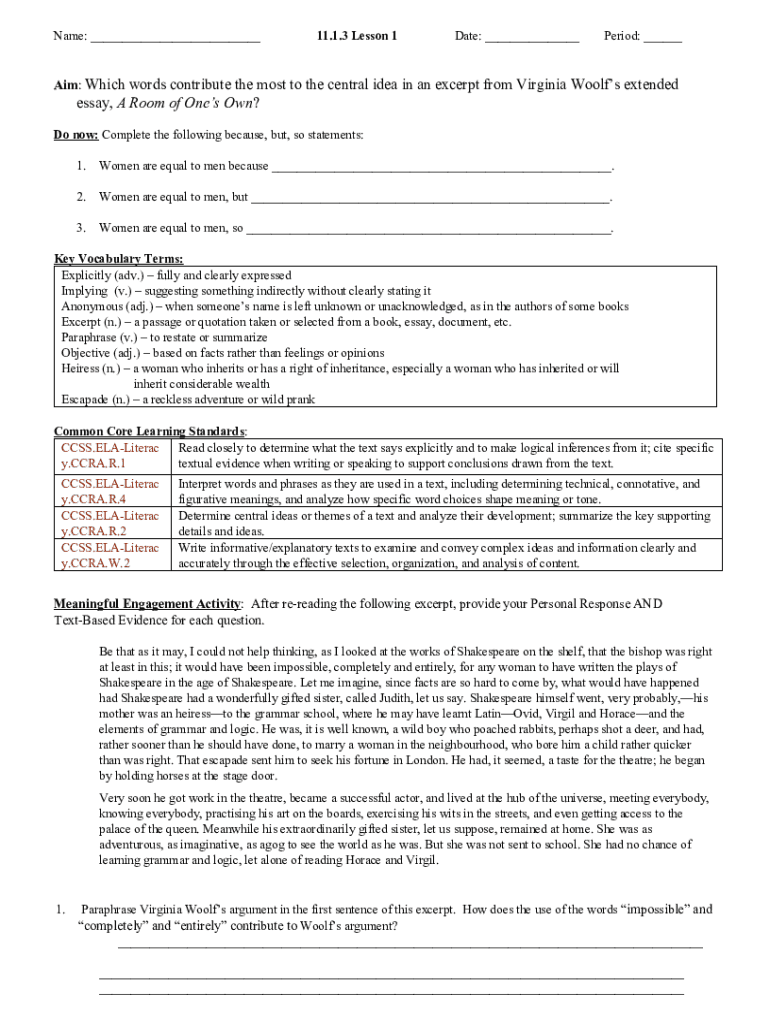 WhichwordscontributethemosttothecentralideainanexcerptfromVirginiaWoolfsextended