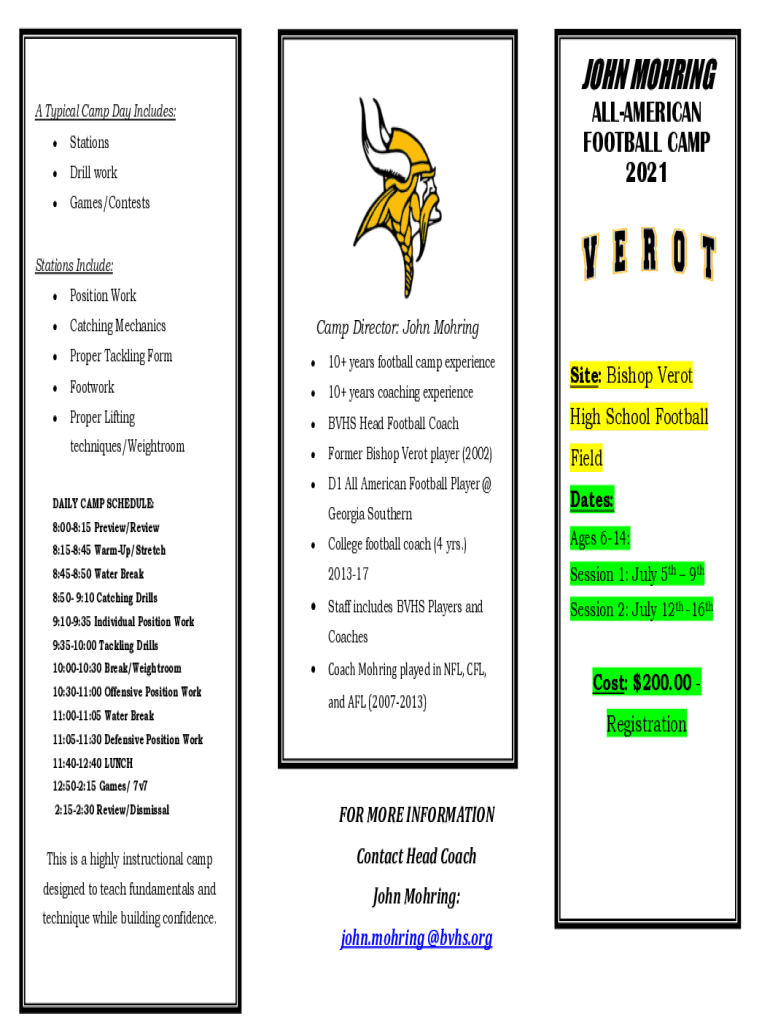 Position WorkCatching MechanicsProper Tackling Form10+ years football camp experienceFootwork10+