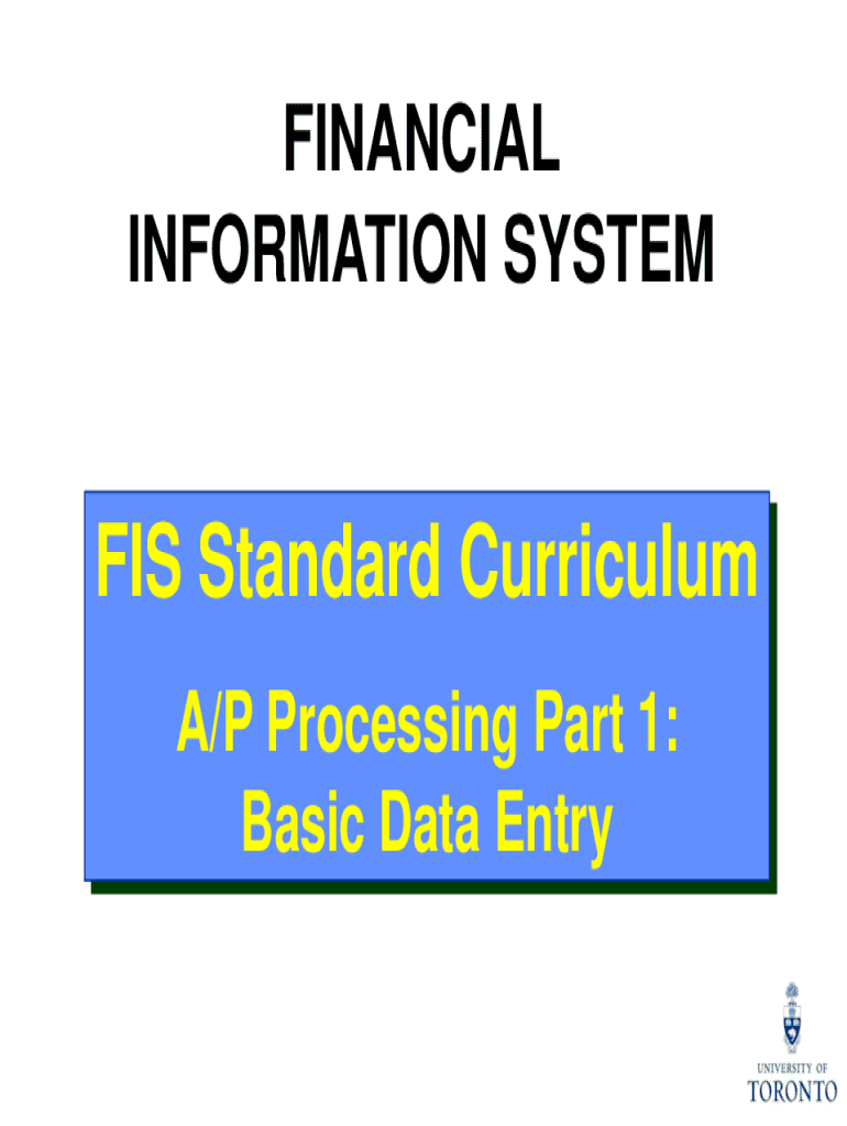 FINANCIAL INFORMATION SYSTEMS Standard Curriculum A/P Processing Part 1: Basic Data Intercourse Objectives This course will help you: Understand the Accounts Payable (A/P) Business Process Understand