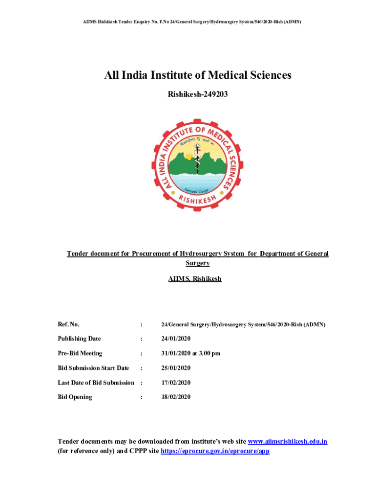 Get the free Tender document for Hydrosurgery System - aiimsrishikesh edu