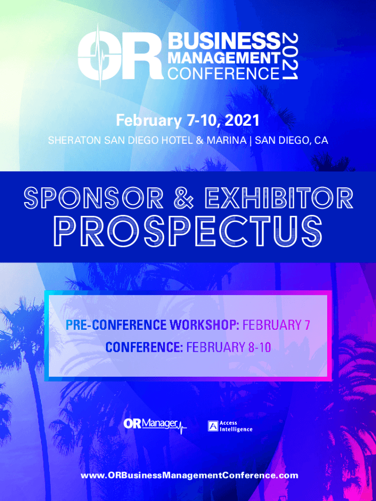 February 710, 2021 SHERATON SAN DIEGO HOTEL & MARINA | SAN DIEGO, Cosponsor & ExhibitorPROSPECTUS CONFERENCE WORKSHOP: FEBRUARY 7 CONFERENCE: FEBRUARY 810www.ORBusinessManagementConference.com 36257You