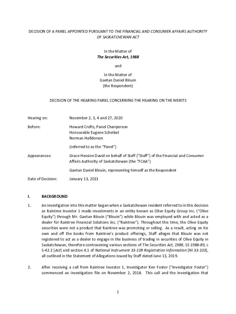 DECISION OF A PANEL APPOINTED PURSUANT TO THE FINANCIAL AND CONSUMER AFFAIRS AUTHORITY