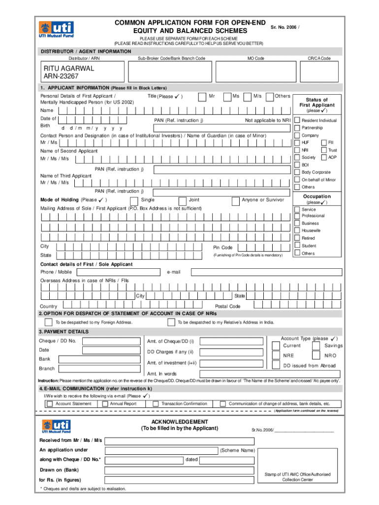 EQUITY AND BALANCED SCHEMES Sr. No. 2006 /PLEASE USE SEPARATE FORM FOR EACH SCHEME