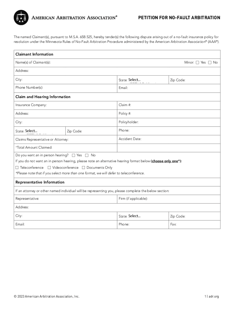 PETITION FOR DEFAULT Arbitration named Claimant(s), pursuant to M.S.A. 65B.525, hereby tender(s) the following dispute arising out of a no-fault insurance policy for resolution under the Minnesota