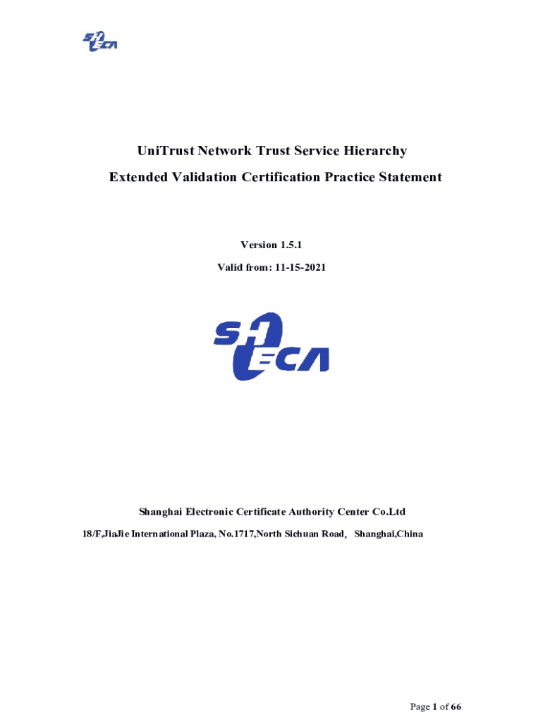 Unit rust Network Trust Service Hierarchy Extended Validation Certification Practice StatementVersion 1.5.1 Valid from: 11152021Shanghai Electronic Certificate Authority Center Co. Ltd 18/F, Jamie
